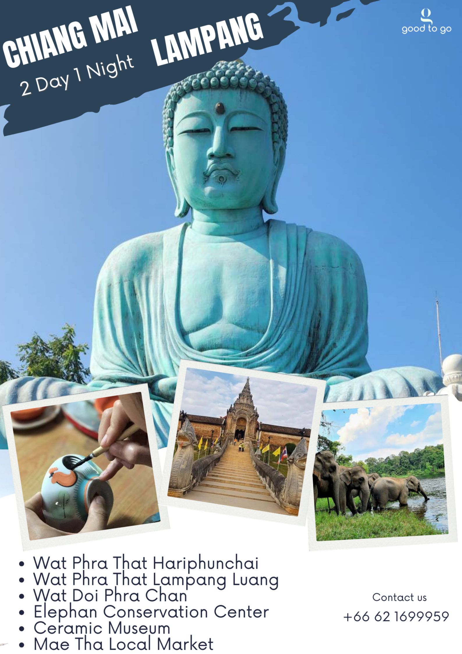 Experience the cultural richness of Northern Thailand on this 2-day, 1-night tour from Chiang Mai to Lampang. Visit the ancient Hariphunchai Temple in Lamphun, a historic gem of the Lanna Kingdom. Witness the beauty and compassion at the Elephant Conservation Center, where elephants are cared for with love. Discover the spiritual elegance of Lampang Luang Temple and enjoy the panoramic views from the hilltop Wat Doi Phra Chan. End the trip with a visit to the Lampang Ceramics Museum, showcasing the province’s famous pottery heritage. A peaceful and cultural escape just a short drive from Chiang Mai.